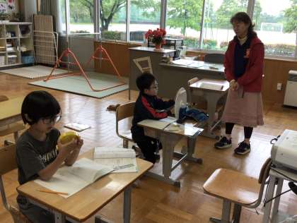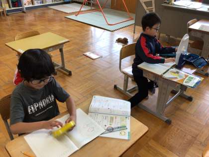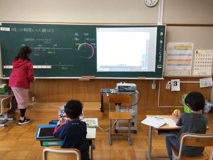 「時こくと時間」について学習していました。時計を使いながら一生懸命学習していました。