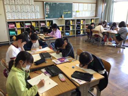 5年生 算数 公開日 2025/06/05 更新日 2025/06/05 お知らせ 5年生の算数「小数のわり算」の授業の様子です。 わり切れない時、四捨五入して、10分の1の位までのがい数を求める計算をしていました。集中して問題を解いていました。