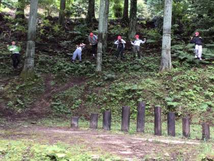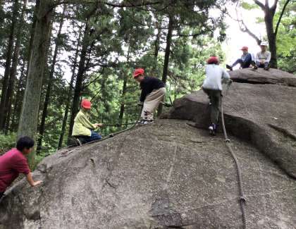 5年生 野外学習 アスレチック 公開日 2025/06/12 更新日 2025/06/12 お知らせ 朝食後は、アスレチックを行いました。岩登りやターザンロープなどを楽しみました。元気いっぱい活動しています。
