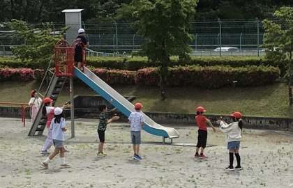 「竹トンボをみんなで飛ばして遊ぼう!」 公開日 2025/06/09 更新日 2025/06/09 お知らせ 今日のことではないですが、竹トンボを飛ばして遊んでいる様子です。子どもたちが飛ばしている竹トンボは、石畳小学校区在住の竹トンボ作り名人の水野さんからいただいたものです。全校児童全員に、2個ずつ作ってくださいました。うまく飛ばせるまで時間がかかる子がいましたが、楽しく竹トンボで遊ぶことができました。水野さん、ありがとうございました。