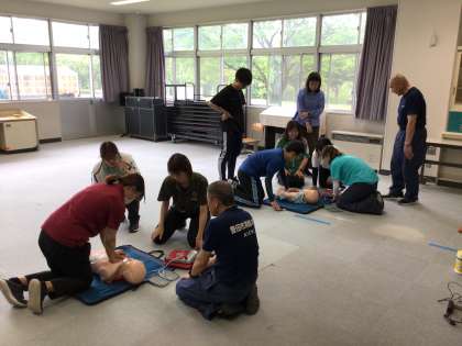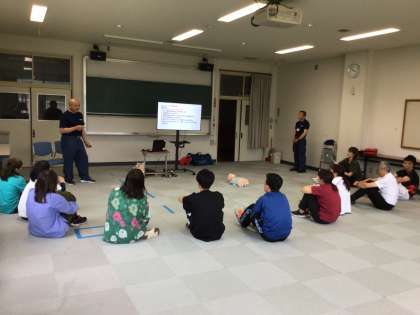 教職員 研修 公開日 2025/06/09 更新日 2025/06/09 お知らせ 子どもたちの下校後、胸部圧迫やAEDの使い方の研修を行いました。 毎年、水泳学習が始まる前に行っています。中消防署の方に来ていただき、あらためて教えていただきながら練習しました。また、熱中症や痙攣への対応など、ファーストエイドの基礎知識も学びました。