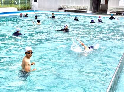 5,6年生もプール開きで、今日プールに入りました。
