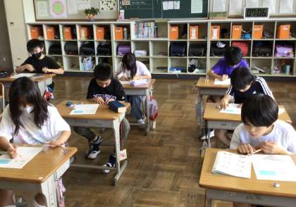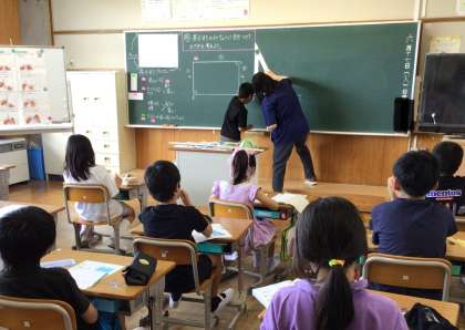 4年生 算数 公開日 2025/06/17 更新日 2025/06/17 お知らせ 4年生の算数の授業の様子です。 長方形を三角定規を使ってかいていました。長方形の特徴に目をつけ、どのようにすれば長方形がかけるか真剣に考え、試行錯誤しながらかく姿が見られました。その後、黒板にかいて発表しました。