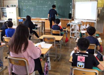 6年生 算数 公開日 2025/06/17 更新日 2025/06/17 お知らせ 6年生の算数「分数÷分数」の授業の様子です。 分数を使った割合の問題を求めていました。図を見ながらどのような式になるのか考えました。