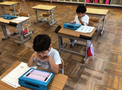 1年生 生活科 公開日 2025/06/18 更新日 2025/06/18 お知らせ 1年生の生活科の授業の様子です。 学校たんけんで見つけたことを、タブレットを使ってクイズにしていました。どんなクイズにしようか悩みながら、文字を探してクイズを作っていました。