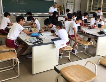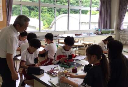 6年生 理科 公開日 2025/06/27 更新日 2025/06/27 お知らせ 6年生の理科の授業の様子です。 根からとり入れた水が植物の体のどこを通って全体にいきわたるのか調べていました。グループで協力し、植物染色液を吸い上げたホウセンカの葉、茎、根をカッターナイフで切り、断面を熱心に観察する姿が見られました。