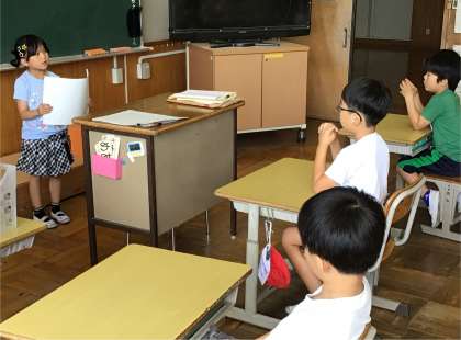 2年生 国語 公開日 2025/06/27 更新日 2025/06/27 お知らせ 2年生の国語「こんなことしているよ」の授業の様子です。 家でしていることを「はじめに」「つぎに」「それから」「さいごに」といった言葉を使いながら順序よく話していました。友達の発表をよく聴き、質問したり、感想を言ったりする姿も見られました。