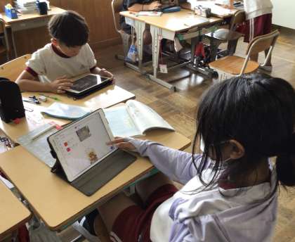 5年生の国語「地域のみりょくを伝えよう」の授業の様子です。
