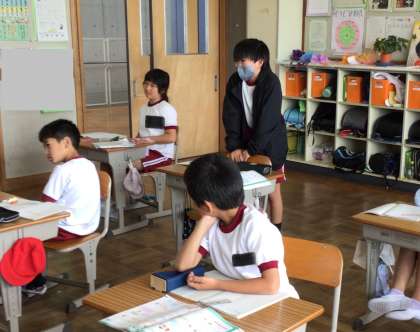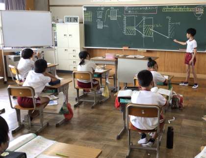 4年生 算数 公開日 2025/07/02 更新日 2025/07/02 お知らせ 4年生の算数の授業の様子です。 0.1よりも小さいメモリの「かさ」を求める学習をしていました。どのように求めたのか、前に出て一生懸命説明する姿が見られました。
