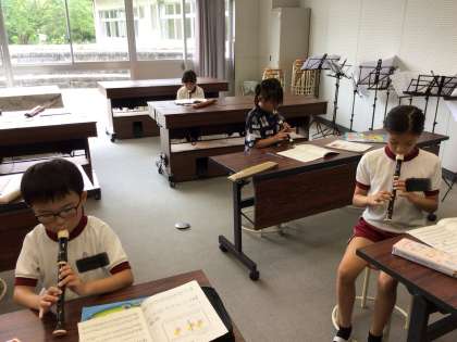 3年生 音楽 公開日 2025/07/04 更新日 2025/07/04 お知らせ 3年生の音楽の授業の様子です。 「メリーさんのひつじ」をリコーダーで演奏していました。上のパートが演奏できるようになると下のパートを練習し、最終的には友だちとパートを分かれて合わせて演奏できるようにしていきます。下のパートはおさえる指が増えるため苦労していましたが、熱心に練習する姿が見られました。