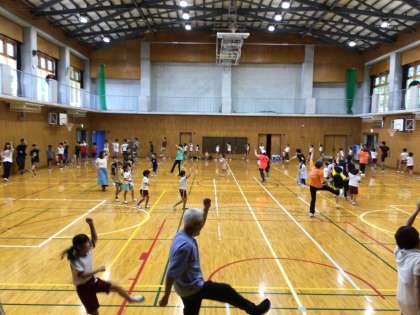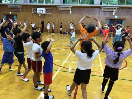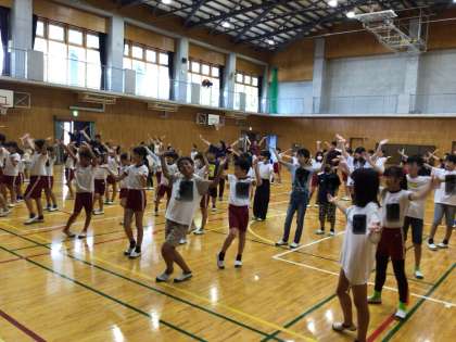 「アラレちゃん音頭」「藤岡音頭」「出逢い町藤岡」「ダンシングヒーロ」の4曲を練習し、子どもたちは元気いっぱいに大変楽しそうに踊っていました。特に、「出逢い町藤岡」「ダンシングヒーロ」は、サンバ等で動きが激しいですが、子どもたちは「ヘイ!」と大きな声を出しながら、のりのりで踊っていました。