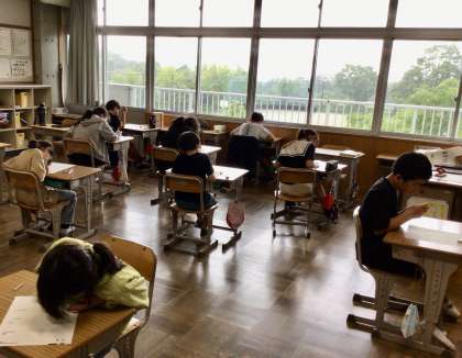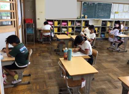5年生は算数のテストに取り組んでいました。