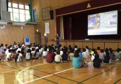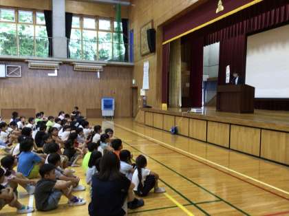 夏休み前の全校集会を行いました。夏休み中、「いのち」を守って安全に生活してほしいことや何かにチャレンジしてみようといった話を聞きました。また、伝達表彰も行いました。子どもたちは、表情よく、しっかり前を向いて話を聞いたり、表彰の様子を見たりすることができていました。
