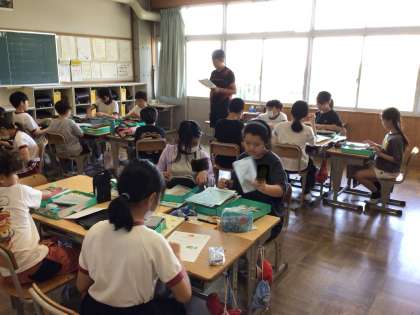 5年生は、お道具箱を出して持ち物の確認をしていました。