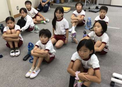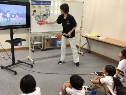 身体測定の前に、保健の先生から、近視にならないためにどうしたらよいのか、目の健康について話を聞いていました。真剣に話を聞いたり、動画を見たりする姿が見られました。