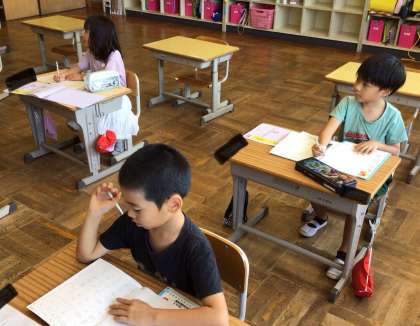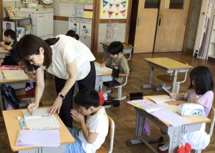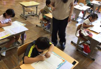 1年生 国語 公開日 2025/09/16 更新日 2025/09/16 お知らせ 学び始めた漢字を練習するために、「かんじれんしゅうちょう」の使い方を教えてもらっていました。先生の見本を見ながら「かんじれんしゅうちょう」の1ページ目に「一」と言う漢字を使った言葉を丁寧に書いていました。これからたくさん練習し、漢字をたくさん覚えることができるといいですね。