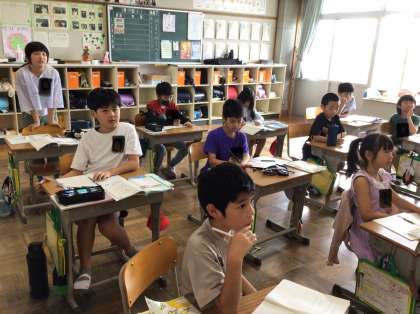 2つのものを500円で買う時お釣りがいくらになるのかを、最終的にカッコを使って1つの式にし、その計算の順序を考えていく学習でした。まずは、自分のやり方で答えを出し、どうしてそのやり方をしたのか、みんなに説明していました。自分の考え方を堂々と説明する姿が見られました。