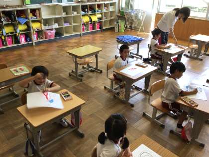 1年生 図工 公開日 2025/10/06 更新日 2025/10/06 お知らせ 読書感想画に取り組んでいました。はじめに、絵を見ないで、自分で想像しながらお話を聞きました。そこから自分で様子や主人公たちのことを思い浮かべて絵にしていきます。今日はまだ下がきの段階でしたが、自分の好きな場面をみんな楽しそうに描いていました。
