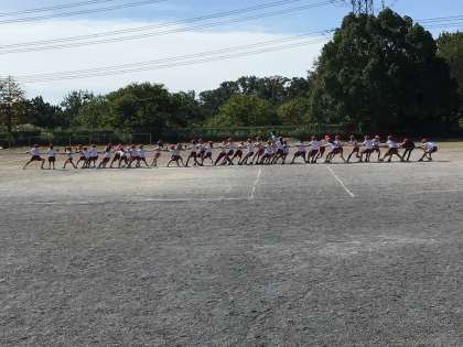 運動会で行う「綱引き」の練習をしました。今年度新しく取り入れた競技なので、初めて行う子も多く、うまく引けない子もいましたが、最後まで一生懸命綱を引いていました。全校で行うので、学年によって身長差がありますが、高学年の子が低学年の子を気遣って、低く引くよう心がけていました。また、チームごとに作戦タイムをとることで、徐々に掛け声も揃い、団結して頑張る姿が見られました。