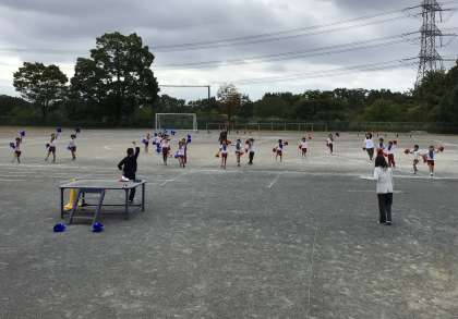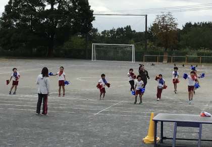 運動会のダンスの練習をしていました。カラフルなポンポンを持ち、元気に楽しんで踊る姿が見られました。