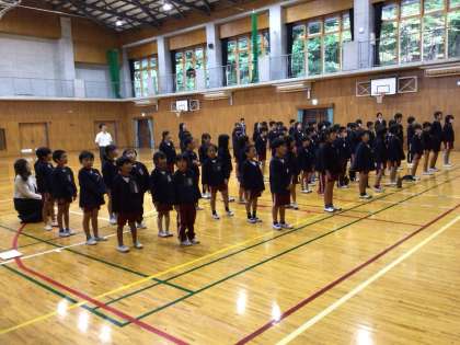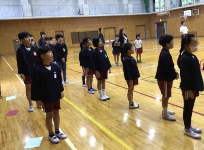 学期区切り式2 公開日 2025/10/10 更新日 2025/10/10 お知らせ 代表児童の発表の後、校長先生の話を聞きました。学年・学級ごとに成長したところ、がんばっているところなどについて話を聞きました。多くの児童がしっかりと話を聞くことができており、中には頷きながら熱心に聞いている児童もいました。最後に、校歌を歌って式は終わりになりました。