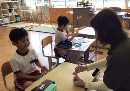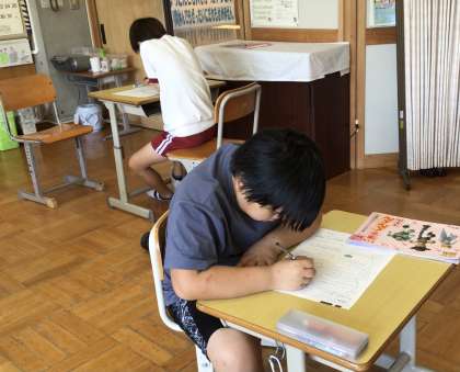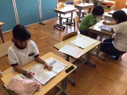算数の学習や国語のテストをしていました。それぞれの学年が自分の学習に集中して取り組んでいました。