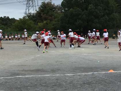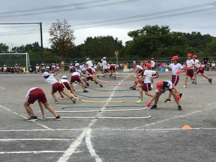 運動会5 綱取り 公開日 2025/10/18 更新日 2025/10/18 お知らせ 4、5、6年生の綱取りは、最後まで気の抜けない取り合いとなりました。とても体力のいる競技でしたが、綱を取っては走って持っていったり、時間いっぱいまで引っぱり合いを続けていたりして、最後まで諦めずに競技を続けていました。