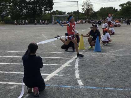 運動会7 石畳スペシャルリレー 公開日 2025/10/18 更新日 2025/10/18 お知らせ 今年度の石畳スペシャルリレーでは、6年生全員と、1年生から5年生までの代表が競いました。6年生の走力に負けじと、下学年の児童もがんばりましたが、6年生が勝利しました。ただ、練習の成果でバトンの渡し方がみんな大変上手でした。