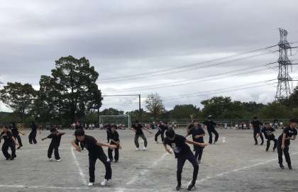 5、6年生の表現は、グループごとに曲と振り付けを決め、お互いのグループに教え合うことで、ダンスを覚え、今日の本番に備えてきました。休み時間も仲間と練習をしてきた成果として、迫力のあるダンスと、力強いフラッグの演技を魅せることができました。