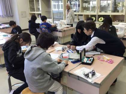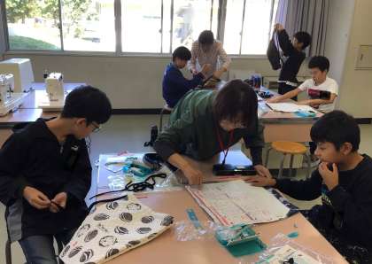 6年生 家庭科 公開日 2025/10/23 更新日 2025/10/23 お知らせ ナップサックづくりの様子です。今日も地域ボランティアの方に支援していただき、ナップサックを完成させていきました。ミシンだけでなく、紐通しの仕方なども教えていただきました。完成すると、嬉しそうに背負う姿が見られました。 ボランティアの皆様、ありがとうございました。
