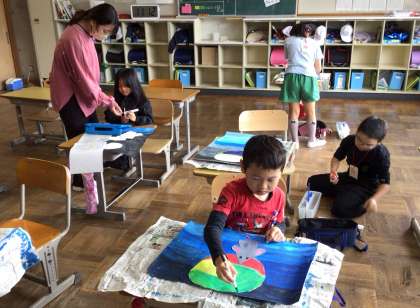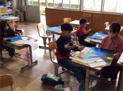 2年生 図工 公開日 2025/10/24 更新日 2025/10/24 お知らせ 「お月さまってどんなあじ」というお話の絵を描いていました。どの子の絵も色が大変きれいでした。細かい所まで丁寧に塗ろうと集中して取り組む姿が見られました。完成が楽しみです。