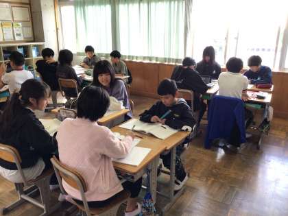 6年生 国語 公開日 2025/10/27 更新日 2025/10/27 お知らせ プラスチックごみ問題の解決策を考えるために、教科書の資料を、キーワードにチェックしながら読みました。その後、どんな言葉がキーワードになるか、グループで話し合っていました。目的意識をもって文章を読むと、内容を深く考えながら読むことができますね。