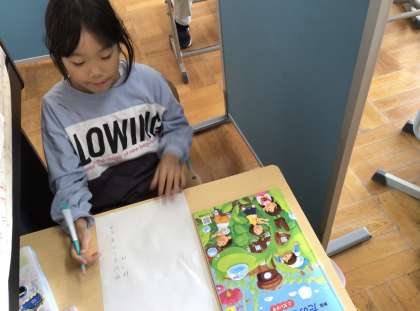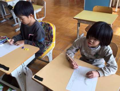 あすくす 生活科 公開日 2025/11/04 更新日 2025/11/04 お知らせ さつまいもを掘ったことについての絵日記を書いていました。先生の見本を見ながら丁寧な字で書いていました。書きたいことがいっぱいあって、プリントの裏まで書く子もいました。