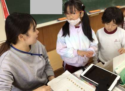 2年生が九九の練習をしていました。それぞれの段の上がりの九九、下がりの九九、ばらばらの九九を先生に聞いてもらい、合格するとシールがもらえます。何度も挑戦したり、合格してシールをもらい喜んだりする姿が見られました。全ての段で合格するのはまだまだ難しそうですが、繰り返し練習し、すらすら言えるようになると、今後のかけ算やわり算の学習がスムーズにいきます。ご家庭でもお風呂の中などで一緒に九九を唱えながら練習してみてください。