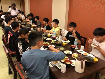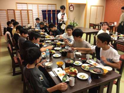 旅館に到着し、到着式を行い、夕食を食べました。もりもり食べ、ほとんどの子が完食しました。みんな元気です。
