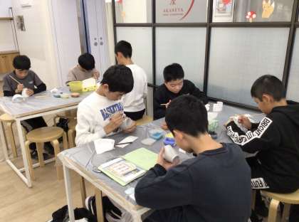 6年生 修学旅行 伝統工芸体験 公開日 2025/11/07 更新日 2025/11/07 お知らせ 夕食後、京都タワーへ行き、伝統工芸体験をしました。 湯呑みやマグカップに京都や奈良を感じさせる絵や模様などを描いていました。これを使う度に、この修学旅行を思い出せますね。窯で焼き、1ヶ月後ぐらいに届くそうです。楽しみですね。