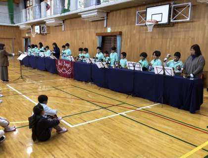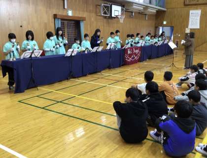 授業参観の前に、ハンドベルクラブの発表がありました。