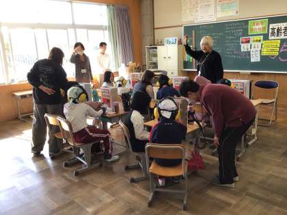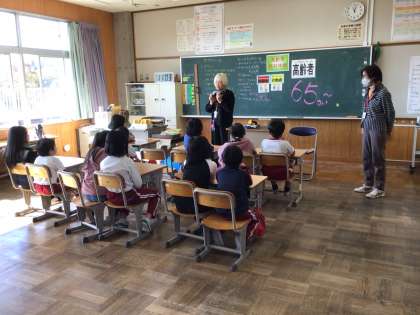 3年生は、高齢者のことについて学びました。高齢者とは何歳からをいうのか、どのようにして生活しているのかなどのことを教えていただきました。授業の後半では、高齢者疑似体験を行い、高齢者の方の苦労を知ることができました。