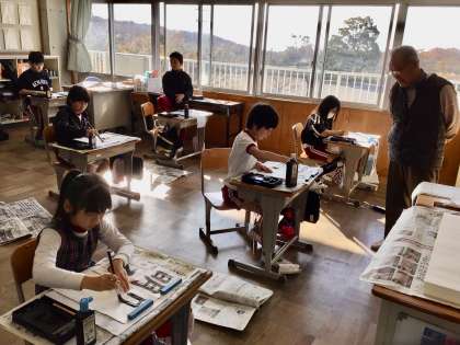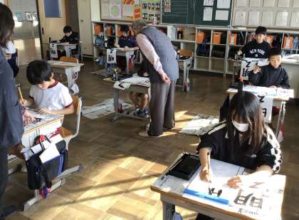 4年生 書写指導 公開日 2025/12/02 更新日 2025/12/02 お知らせ 4年生は「明るい声」と書きます。「る」の曲げるところや「声」のバランスに苦労していましたが、大変丁寧に書いていました。