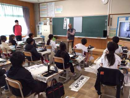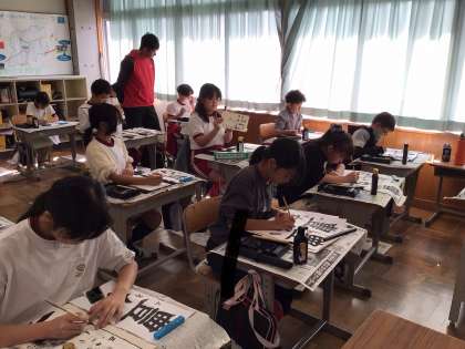 5年生 書写指導 公開日 2025/12/02 更新日 2025/12/02 お知らせ 5年生は「豊かな海」と書きます。漢字の画数が増え、バランスが難しそうですが、一画一画、お手本をよく見て書いていました。講師の高木先生に小筆の持ち方も教えていただき、最後は名前を書く練習もしました。