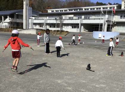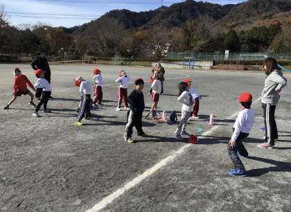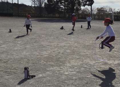 準備体操をしっかりした後、縄跳びをしていました。前跳びや後ろ跳びの練習を一生懸命していました。少しでもできるようになると大喜びで先生に見せていました。