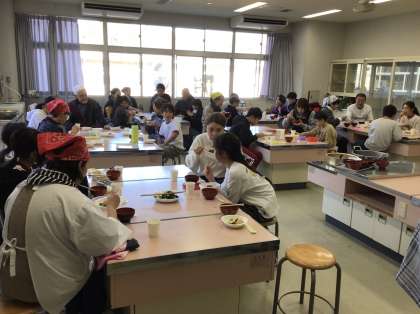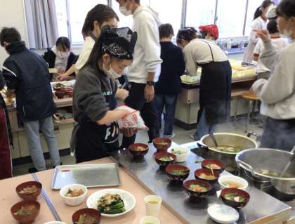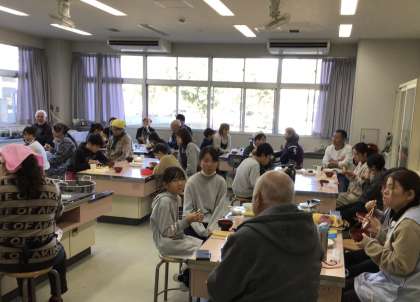 5年生 収穫祭(餅つき)3 公開日 2025/12/10 更新日 2025/12/10 お知らせ 料理ができあがると、地域の方や保護者の方と一緒に食べました。大変上手にでき、皆さんに喜んでいただけました。食事の後は、リコーダーの演奏や合奏をし、収穫祭は終わりました。 手伝ってくださった地域の皆様、保護者の皆様、ありがとうございました。