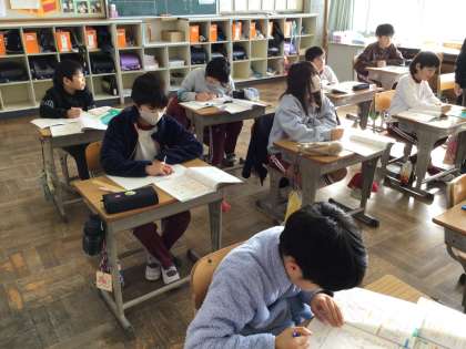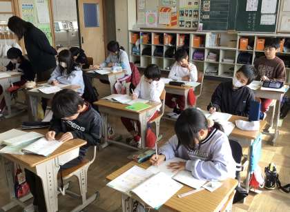 4年生 算数 公開日 2025/12/11 更新日 2025/12/11 お知らせ 小数の割り算で、あまりを求める文章問題に取り組んでいました。問題によって、あまりを求める時と求めない時があるので、問題をよく読む必要があります。頭を悩ませながらも、教科書の問題を解き、終わると「算数の友」の問題にも集中して取り組んでいました。