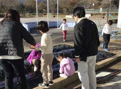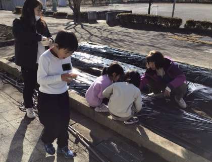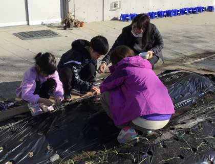 あすくす 自立活動 公開日 2025/12/11 更新日 2025/12/11 お知らせ 大根の種まきをしていました。 先生に種をもらい、その小ささに驚く姿も見られました。こぼさないように気をつけながら丁寧にまいていました。