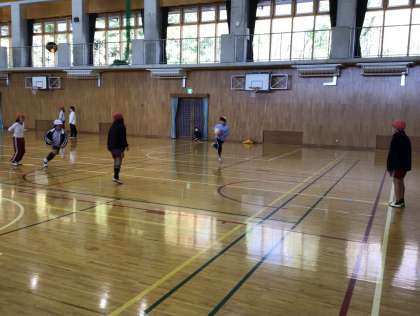 4年生 体育 公開日 2025/12/15 更新日 2025/12/15 お知らせ ベースボール型球技の授業でした。バットで柔らかいボールを打ち、走るランナーをアウトにするために、ボールを投げたり、ボールを持ってベースに走ったりしていました。少しずつルールを覚えていく様子も見られました。