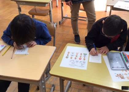 また、別の時間には、年賀状を作る姿が見られました。