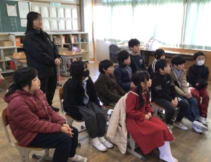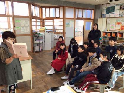 4年生の「おはなしでてこい」の様子です。 目を見開いて、じっくりと話を聞いていました。