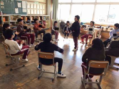 4年生 学級活動 公開日 2025/12/22 更新日 2025/12/22 お知らせ お楽しみ会で「なんでもバスケット」をしていました。すぐに動けるように構えたり、罰ゲームを見て笑ったりする姿が見られ、みんな仲良く、笑顔で楽しんでいました。