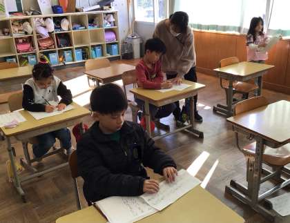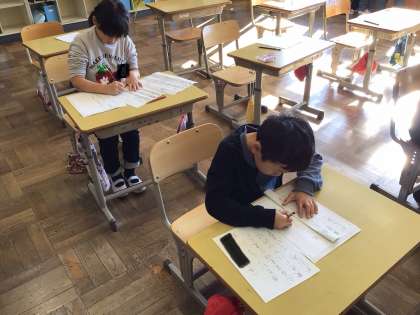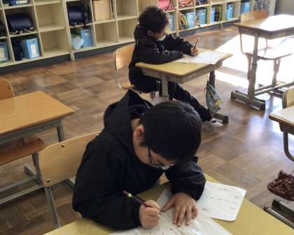 2年生 書写 公開日 2025/12/22 更新日 2025/12/22 お知らせ 書き初め練習をしていました。たくさんの文字があるので集中力が必要になりますが、先生にアドバイスされたところに気をつけて、一文字一文字頑張って書いていました。