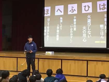 生徒指導担当の話では、冬休みに気をつけてほしい「は・ひ・ふ・へ・ほ」の話がありました。内容は写真をご覧ください。